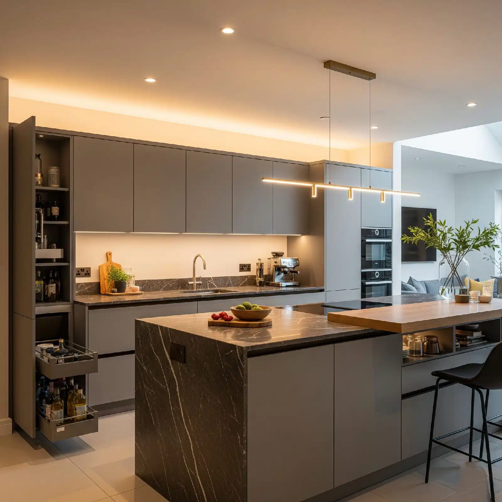 From sleek, contemporary designs to classic, elegant finishes, we craft kitchens that perfectly blend style with smart storage solutions. Imagine whipping up your favorite meals in a space designed just for you, with every detail meticulously planned. Our expert designers will work with you to create a kitchen that not only looks stunning but also enhances your everyday living.
